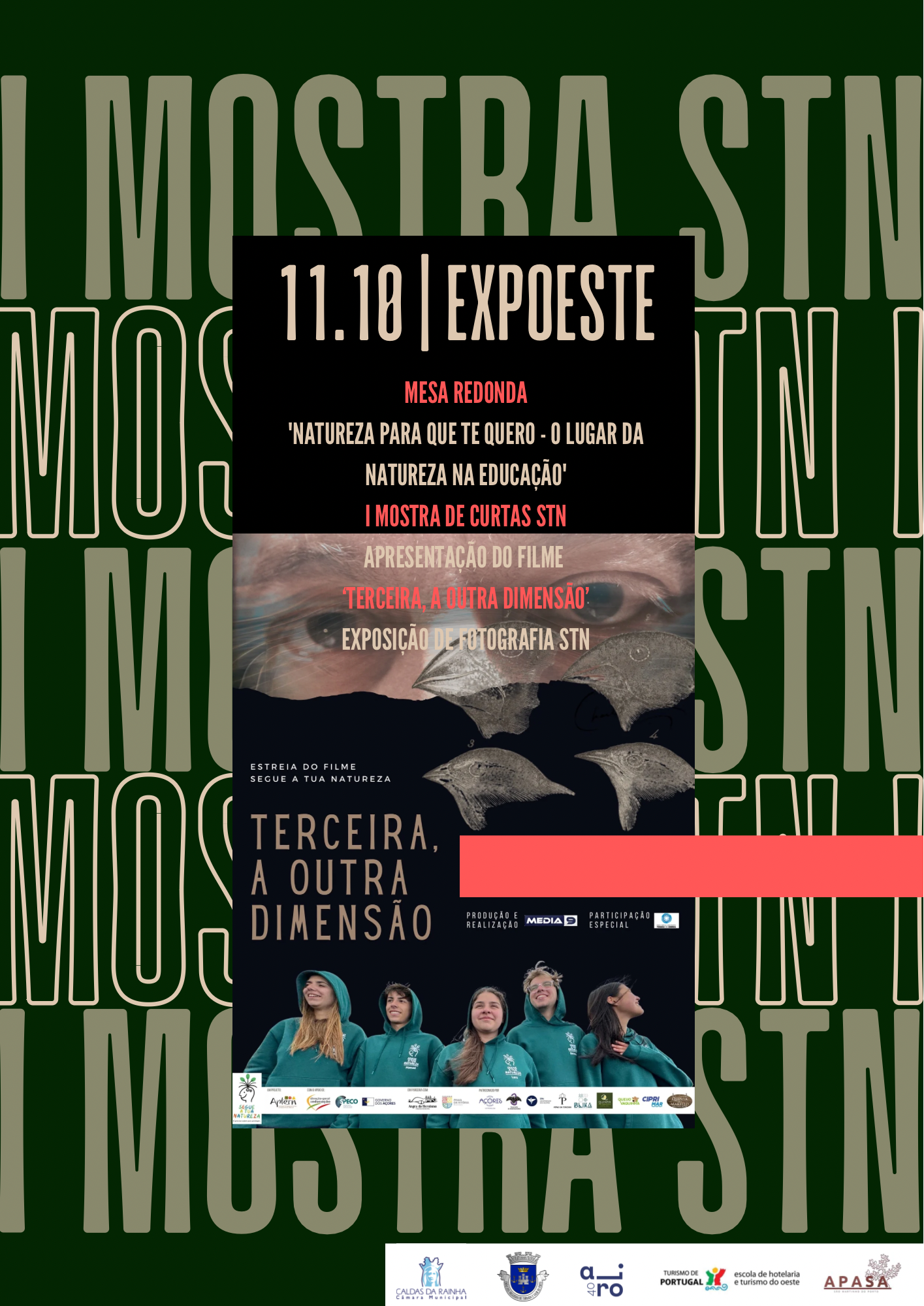 No dia 11 de outubro, às 15h a Expoeste recebeu a "I Mostra de Curtas Segue a Tua Natureza" organizada pela Associação Portuguesa de Turismo em Espaços Rurais e Naturais, em parceria com a Câmara Municipal das Caldas da Rainha e a Associação Empresarial da Região do Oeste.