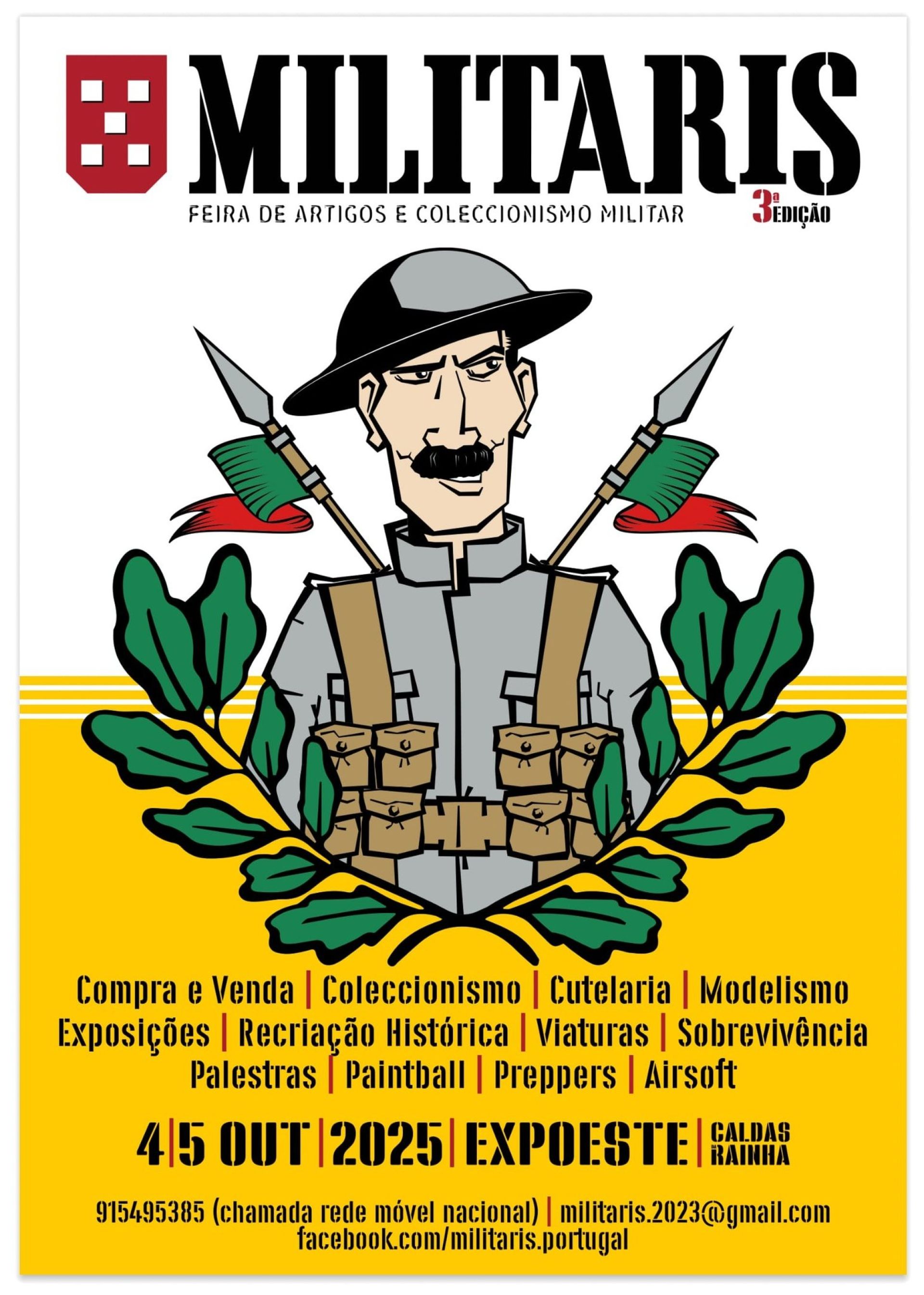 A 3ª edição da Militaris - Feira de Militaria, irá realizar-se nos dias 4 e 5 de outubro de 2025 no Pavilhão da Expoeste.